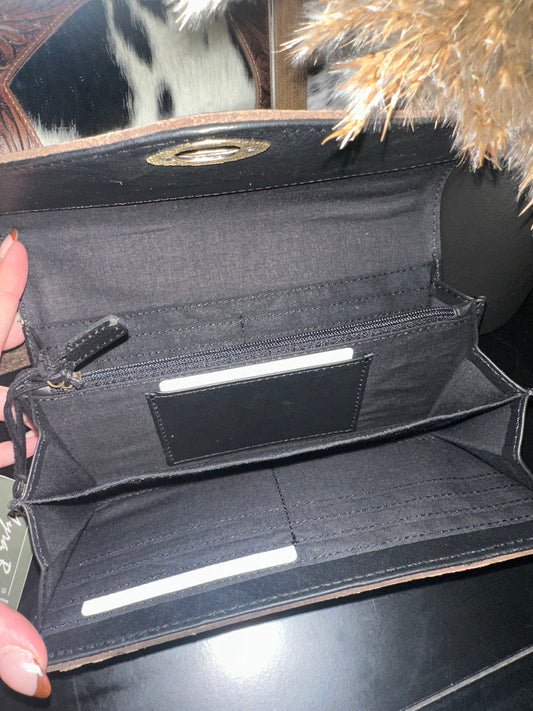 Sold outdark tooled leather wallet