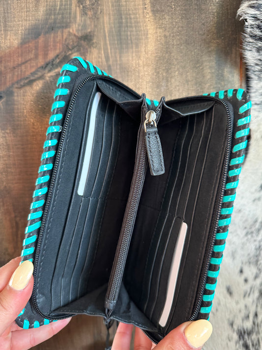 Sold outleather tooled turquoise wallet